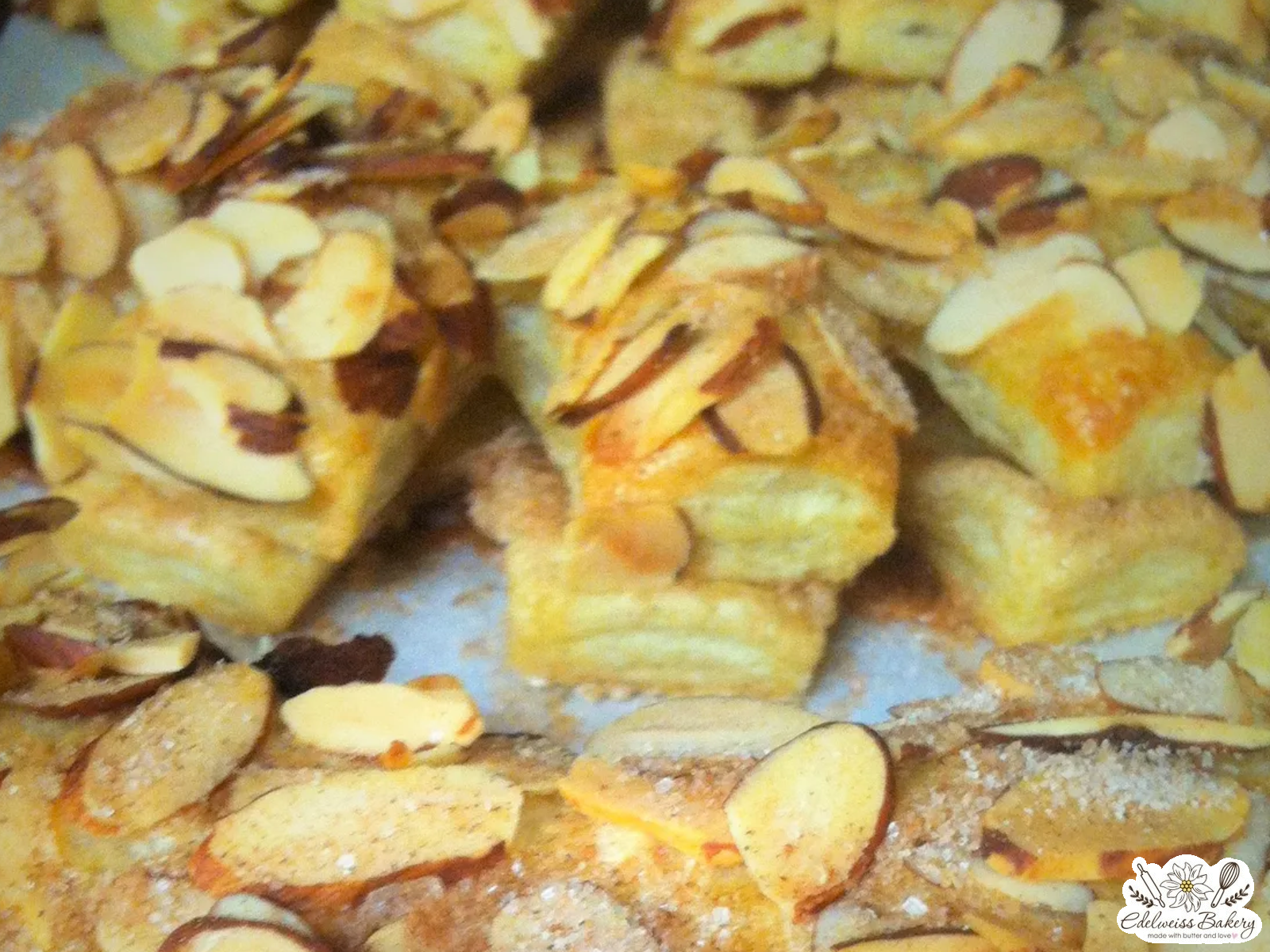 Puff pastry  baked with almond paste and sliced almonds