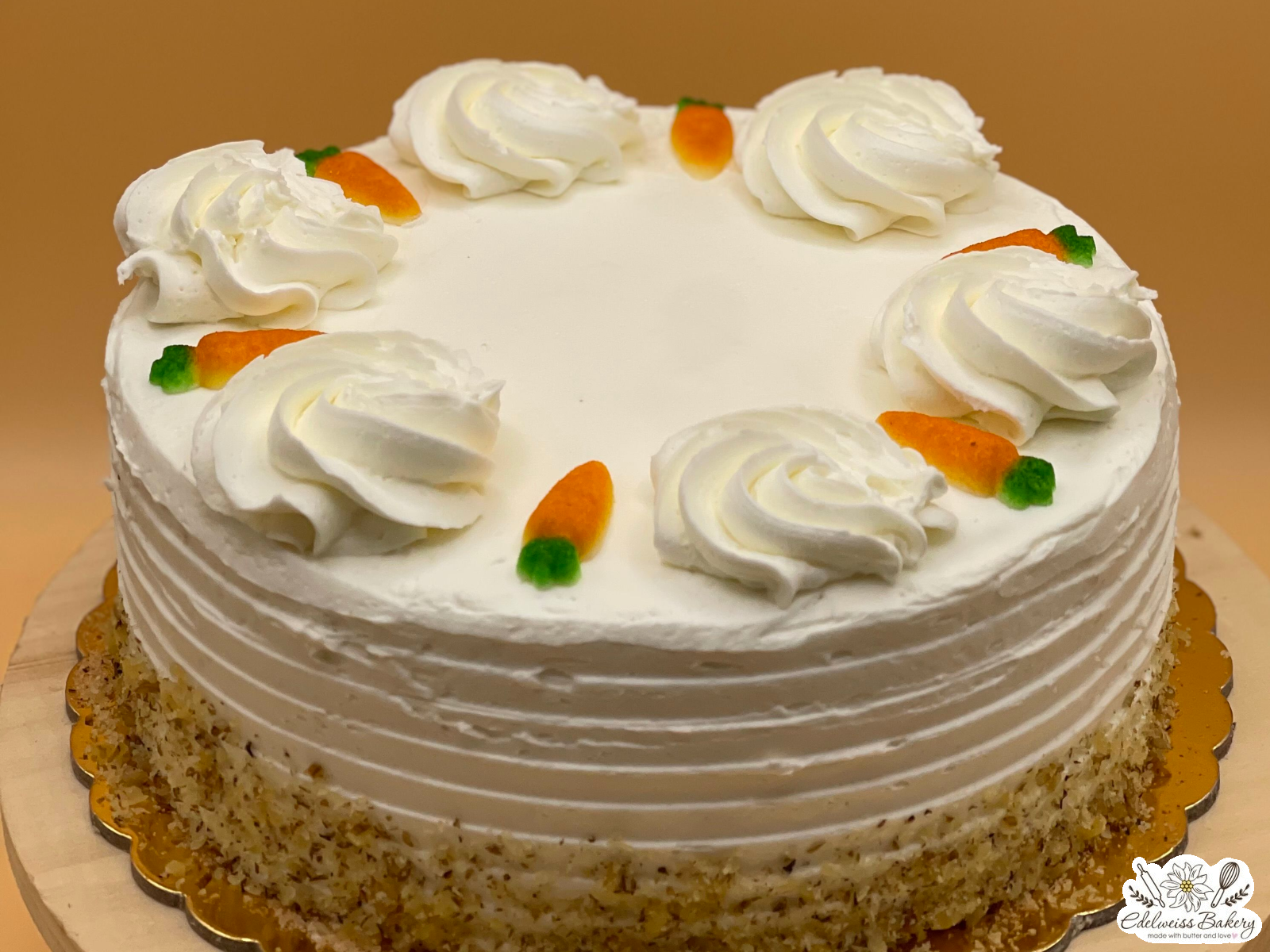 We start with an extra moist spice batter, add our large walnuts, pineapple, and coconut to compliment our freshly ground carrots