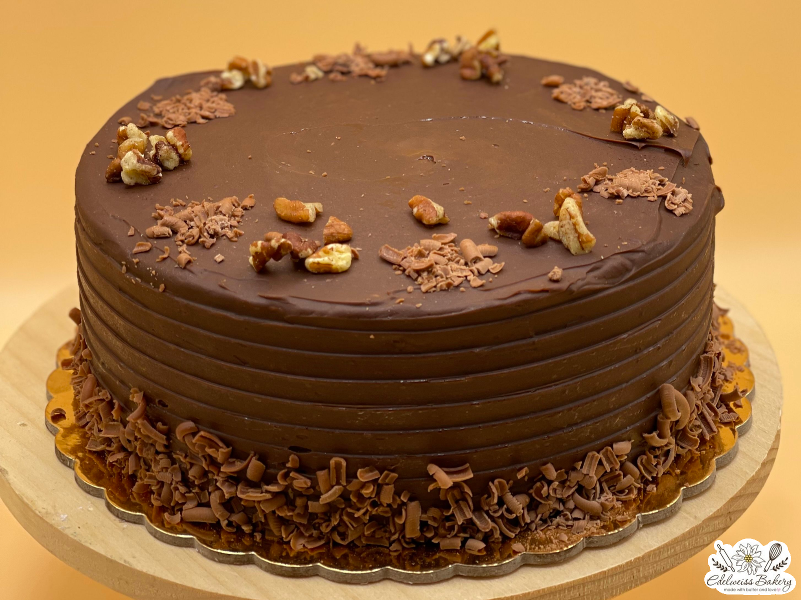 A deliciously spongy Dutch chocolate cake filled with a creamy coconut pecan filling, topped with chocolate ganache