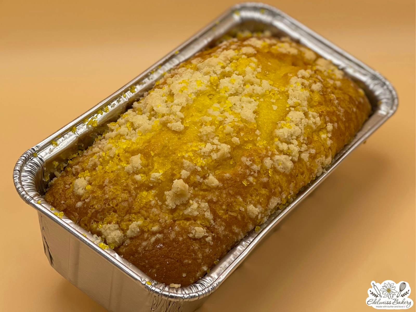 Tangy lemon pound cake topped with streusel crumbles.