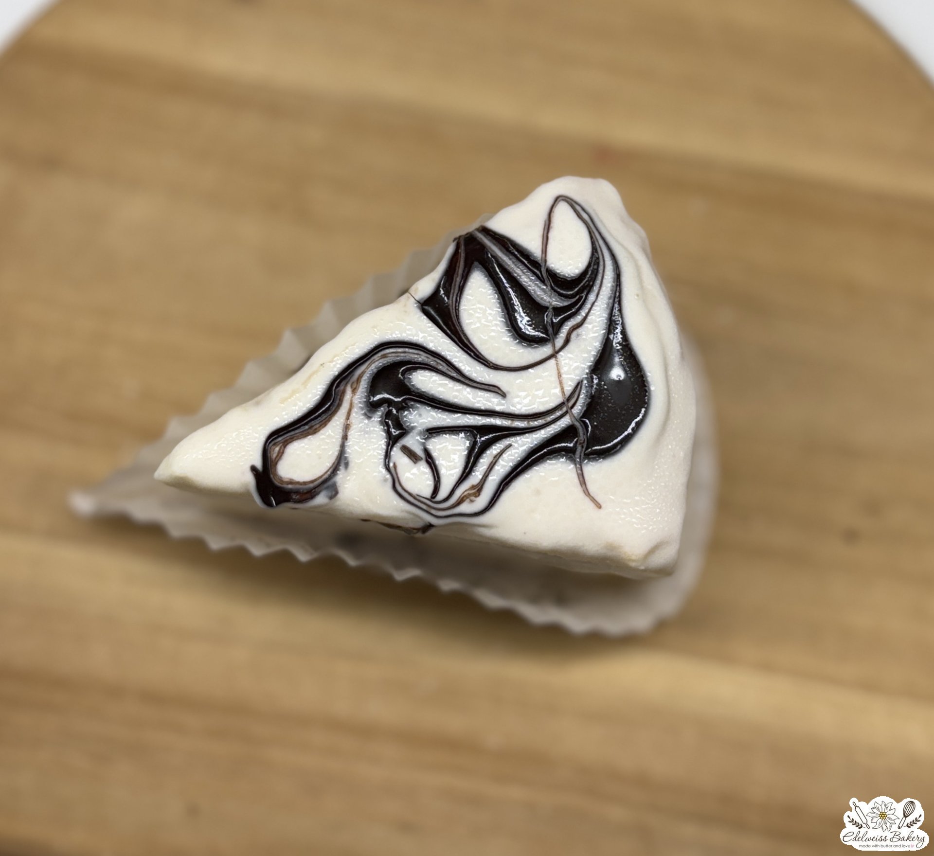 New York "Style" Cheesecake slice dipped in white chocolate.