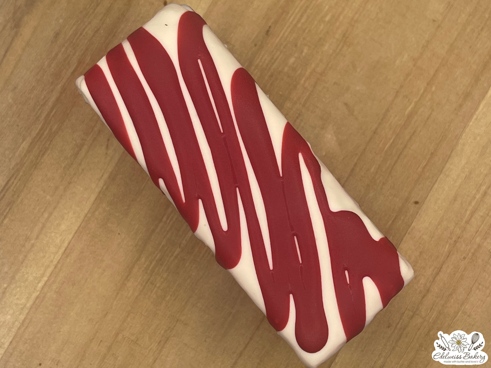 Traditional Red velvet cake filled with cream cheese and dipped in white chocolate.